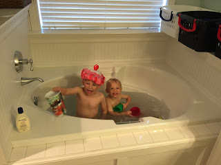 Jackson loves to "juggle water" - not sure where it started, but his face is hilarious!